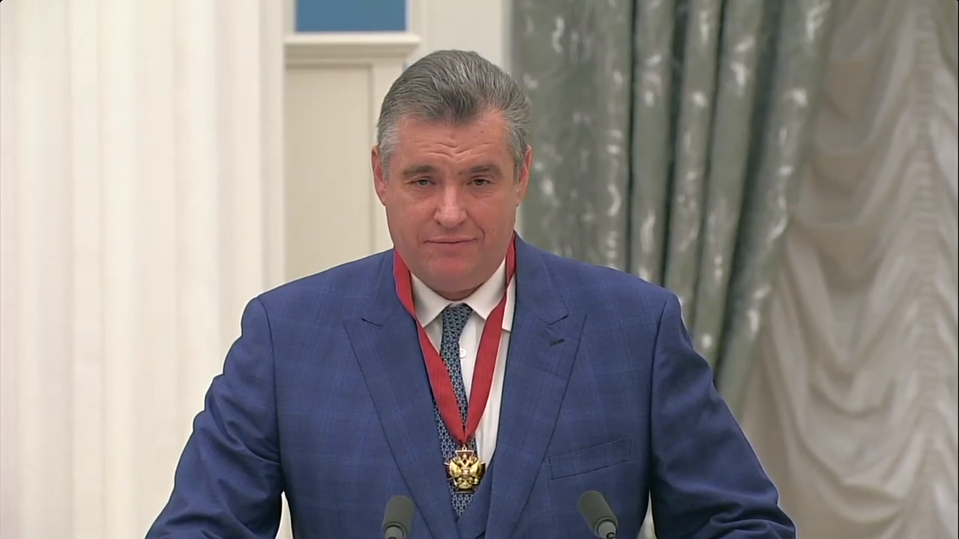 Президент России Владимир Путин в Екатерининском зале Кремля вручил орден «За заслуги перед Отечеством» III степени лидеру ЛДПР Леониду Слуцкому за развитие парламентаризма, активную законотворческую деятельность и многолетнюю добросовестную работу.