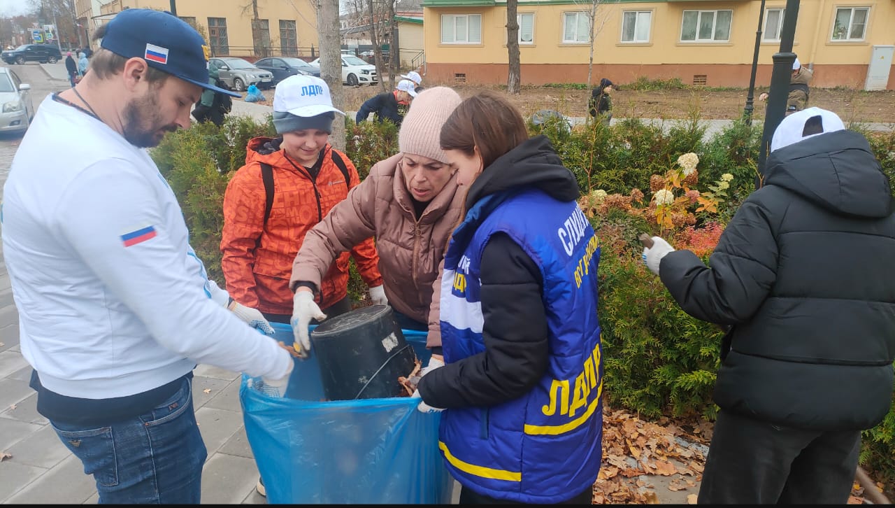 На днях актив Псковского регионального отделения ЛДПР совместно с помощником координатора по работе с молодёжью Владимиром Ефимовым приняли участие в субботнике, который проходил на Октябрьской площади в городе Печоры