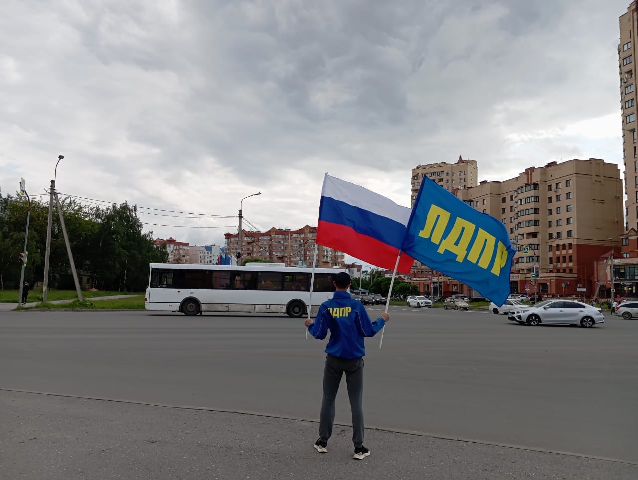 Сегодня, в День России, Псковское региональное отделение ЛДПР под руководством координатора Антона Минакова провело серию одиночных пикетов в разных районах города Пскова