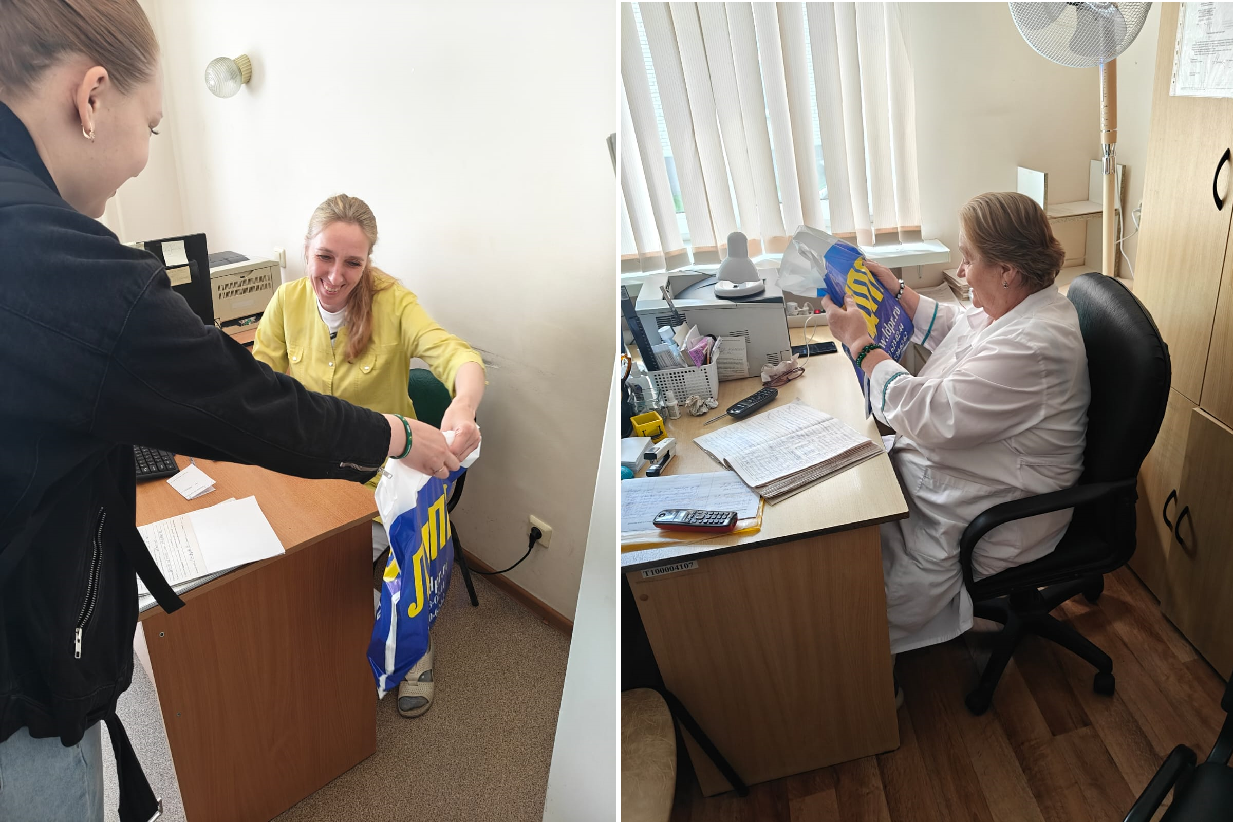 В рамках визита Мария Южанина передала медицинским работникам теплые слова благодарности и ценные подарки. Каждый сотрудник, находящийся на смене, получил подарочный набор, включающий в себя: футболку, носки, кепку, тетради, ручки, чай и дезодоранты с партийной символикой ЛДПР.