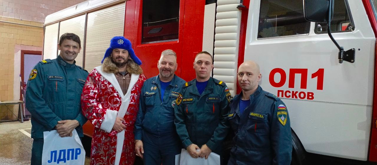 И сегодня, в преддверии Нового года, руководитель Псковской молодежной организации ЛДПР Владимир Ефимов посетил пожарную часть города Пскова, чтобы поздравить героев с наступающим праздником.